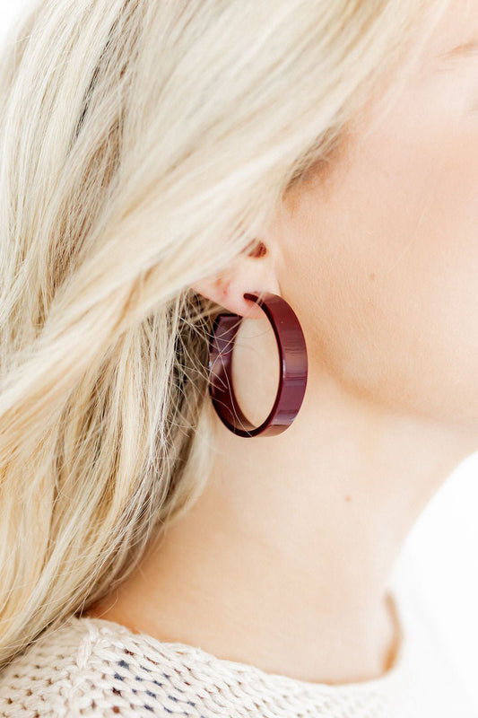 Ashley - Medium Hoop - Maroon - Earrings