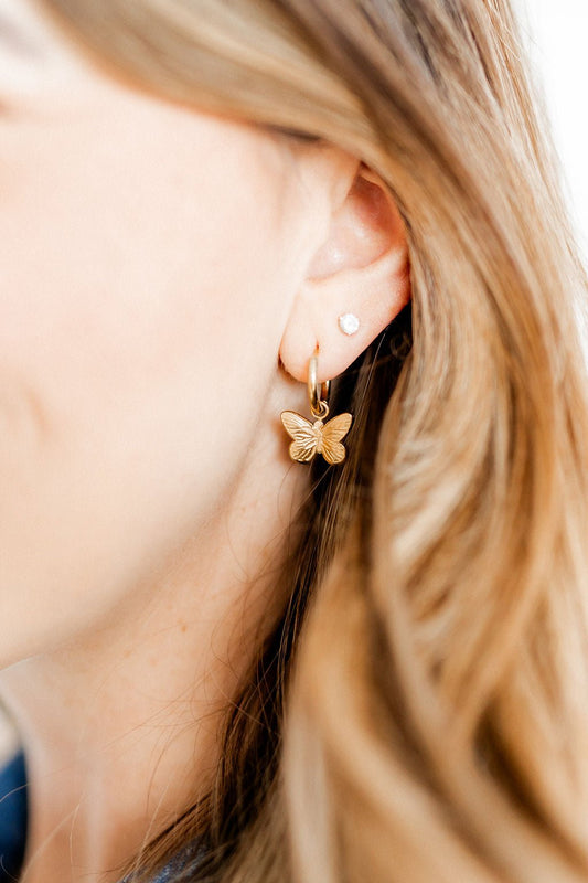 Huggie Charm Earrings - Faye Butterfly Gold