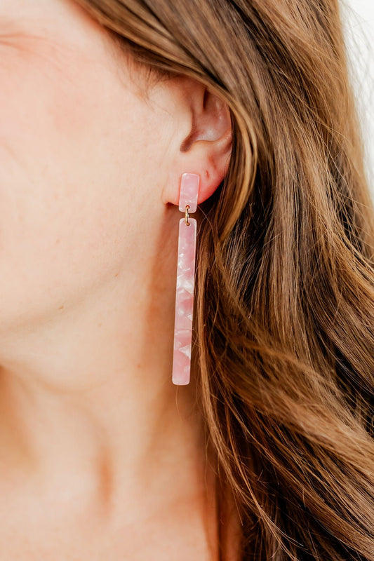 Olivia Statement Earrings Rectangle - Pink Grapefruit