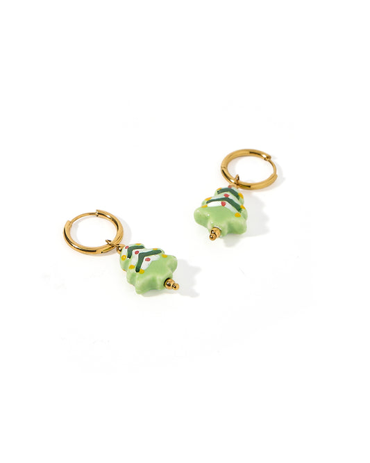 Huggie Charm Earrings - Christmas Tree Polka Dot