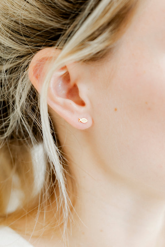 Screwback Stud Earrings - Ichthys Fish Gold