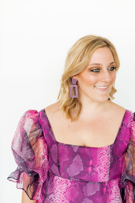 Kennedy Statement Earrings - Purple Glitter