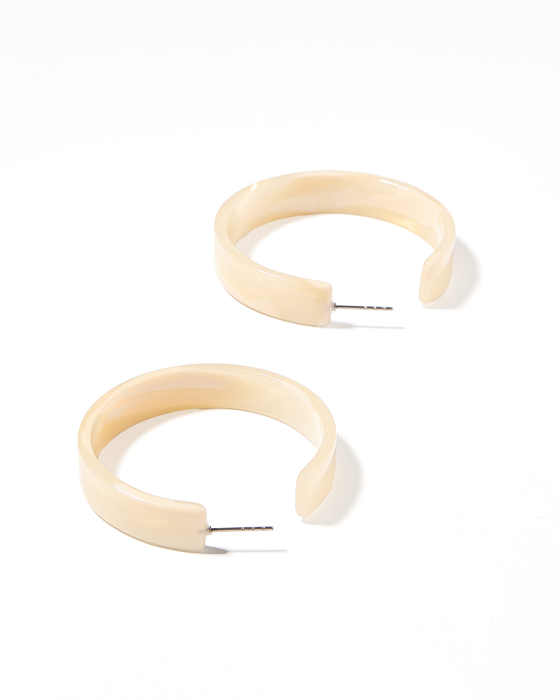 The Ashley hoop is a perfectly sized acetate hoop. It is 50mm wide, is light-weight, waterproof, and the staple earring for every stylish gal.