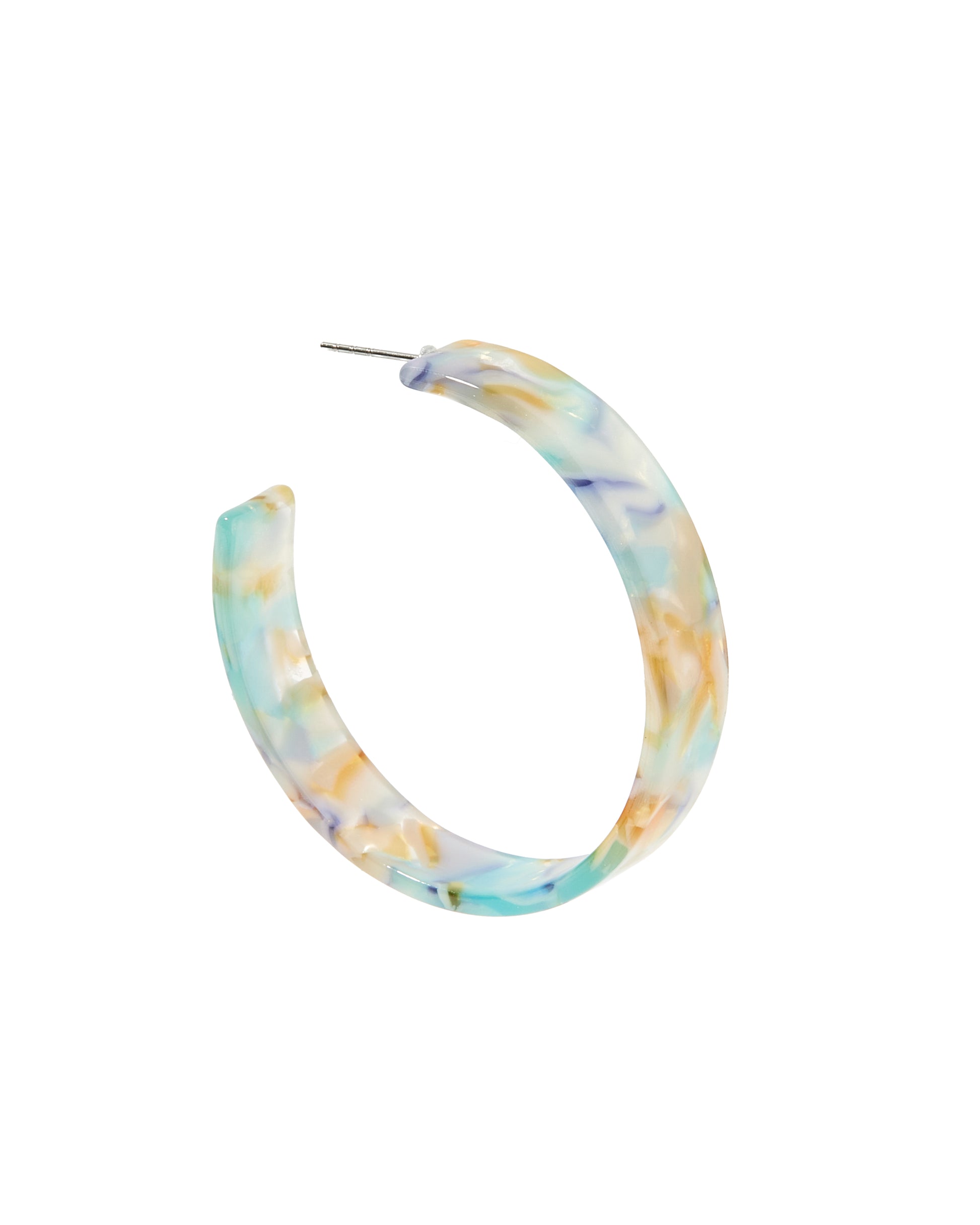 The Ashley hoop is a perfectly sized acetate hoop. It is 50mm wide, is light-weight, waterproof, and the staple earring for every stylish gal.