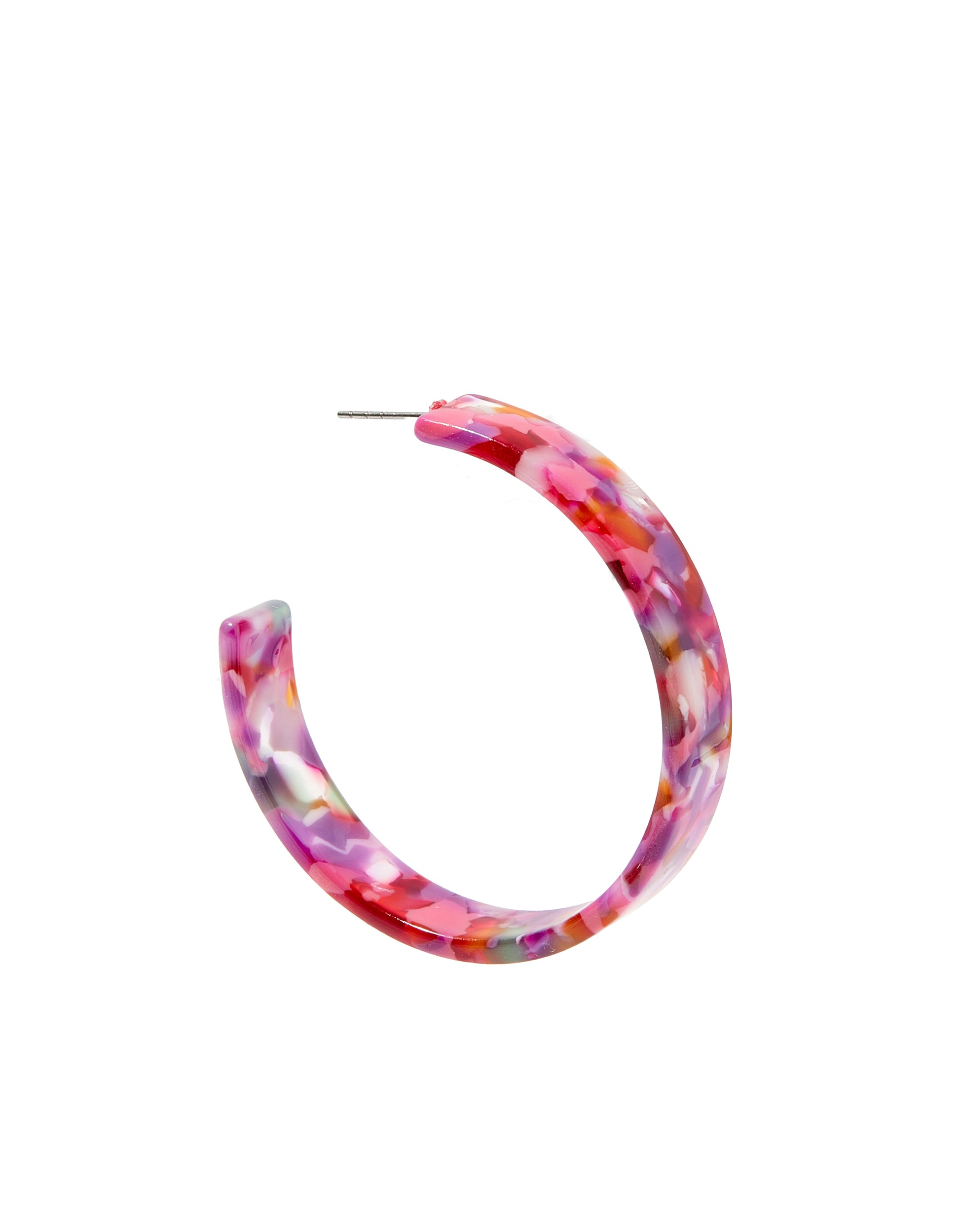 The Ashley hoop is a perfectly sized acetate hoop. It is 50mm wide, is light-weight, waterproof, and the staple earring for every stylish gal.