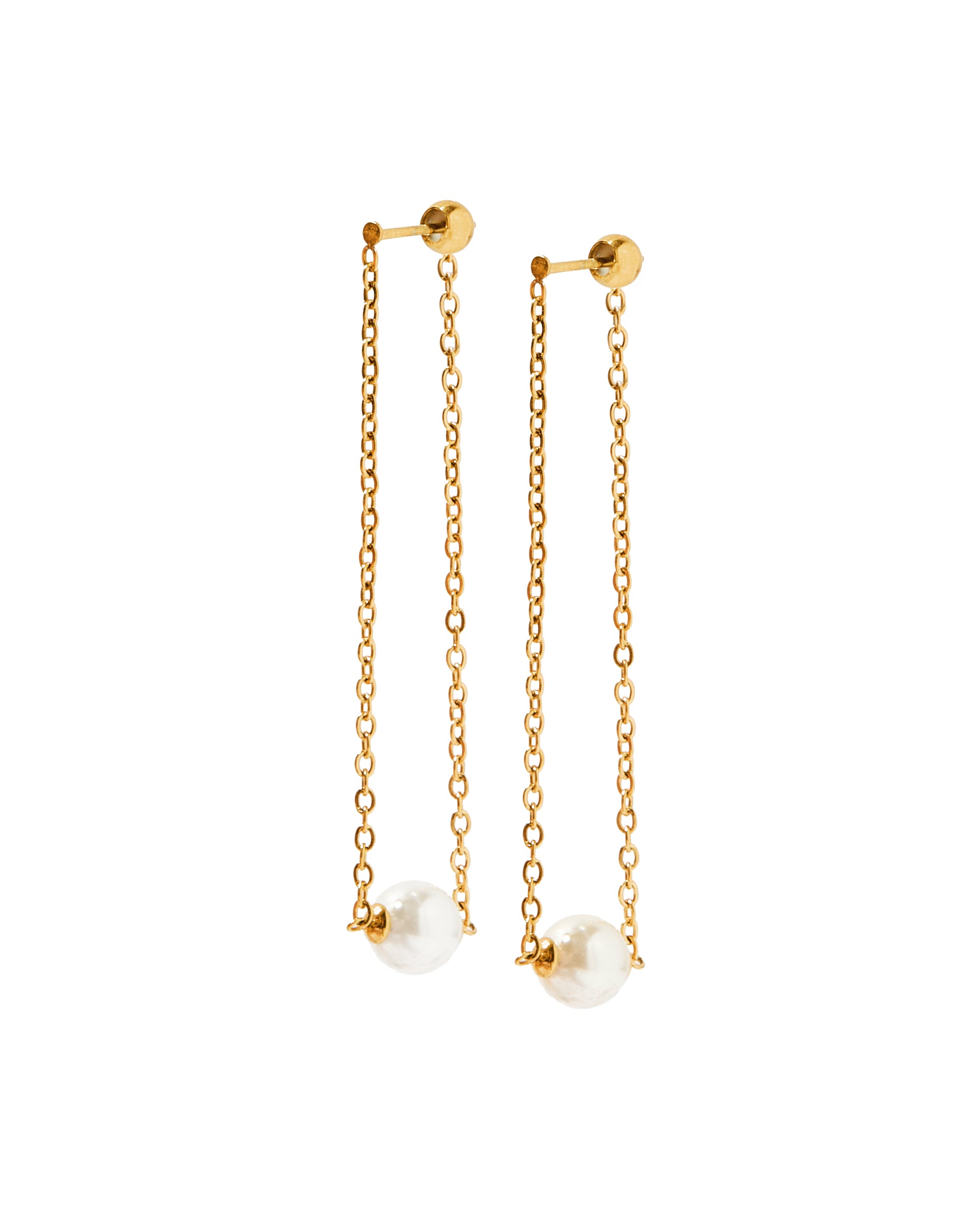 Cassie is a simple gold chain with a single pearl accent in the center. It is 50mm long.