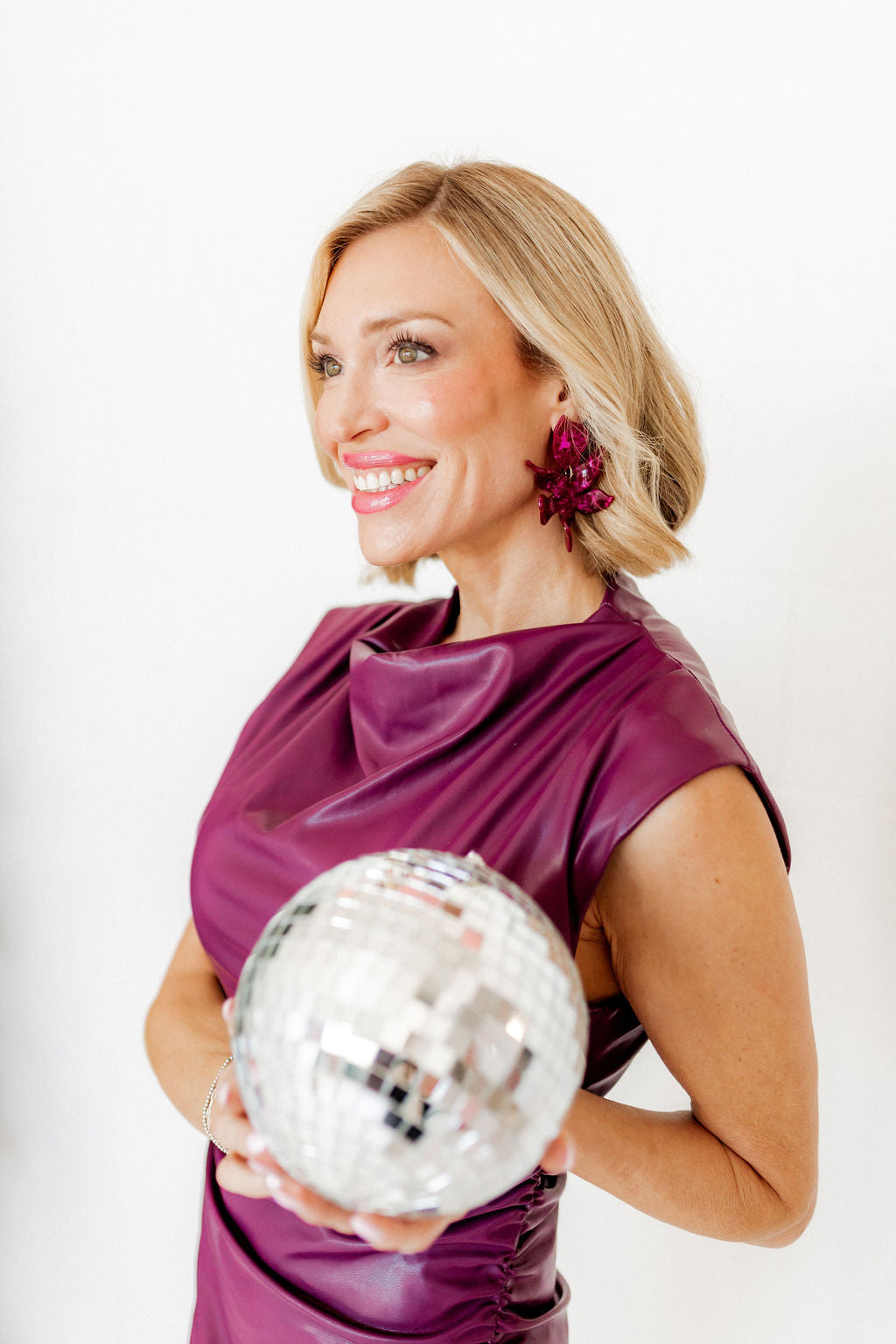 Exude sophistication with the Flora Statement Earrings in Pinot Noir! These oversized 80mm earrings feature a rich blend of dark purple and red hues with a luxurious pearlized finish, creating an elegant and bold accessory. Perfect for date nights, formal events, holiday parties, or elevating your everyday style, these earrings are designed to make a statement with effortless charm.
