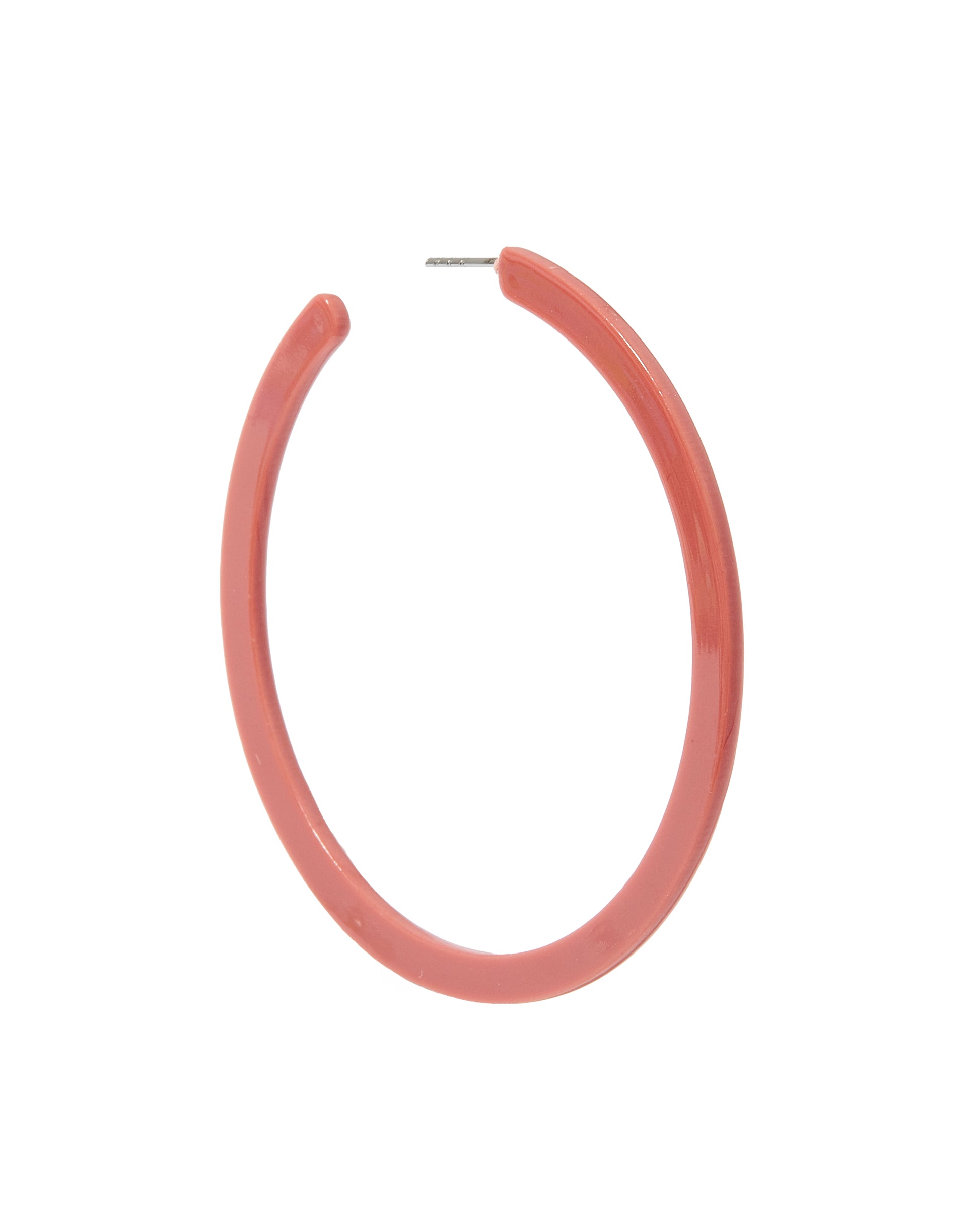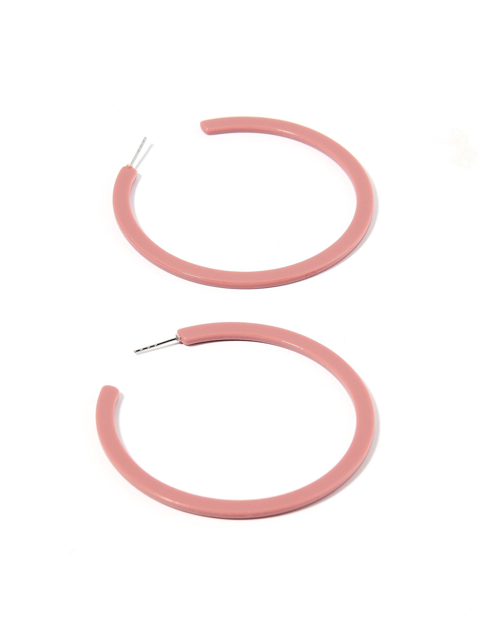 The Holly Mega Hoop Earrings in Dusty Pink offer a perfect blend of boldness and versatility. Crafted from 100% surgical-grade stainless steel and eco-friendly acetate, these hoops are safe for sensitive ears, lightweight, and designed to last. Measuring 65mm in diameter, these larger hoops are waterproof and effortlessly complement any outfit. The Dusty Pink color, a mix of red and pink hues with a glossy finish, adds a soft yet striking touch to your style.