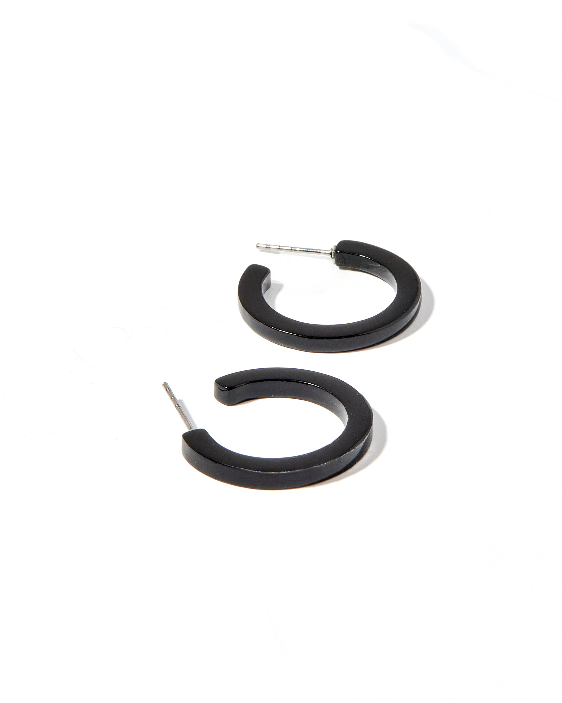 Elevate your everyday style with the True Black Holly Mini Hoop Earrings. Made from 100% surgical-grade stainless steel and eco-friendly acetate, these petite hoops are lightweight, durable, and safe for sensitive ears. Measuring 1 inch in diameter, they are the perfect size for daily wear, offering a classic and understated look. The solid black color with a glossy finish adds a sleek and modern touch to any outfit.