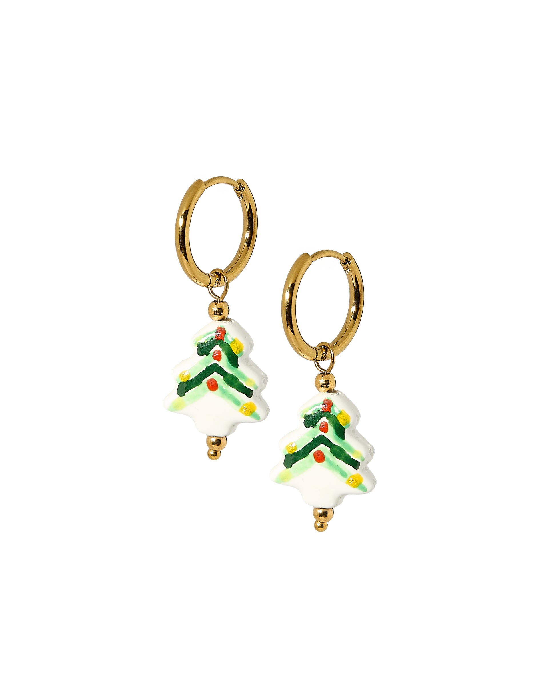 - 16mm gold huggie hoop with removable 23mm x 19mm white Christmas tree charm