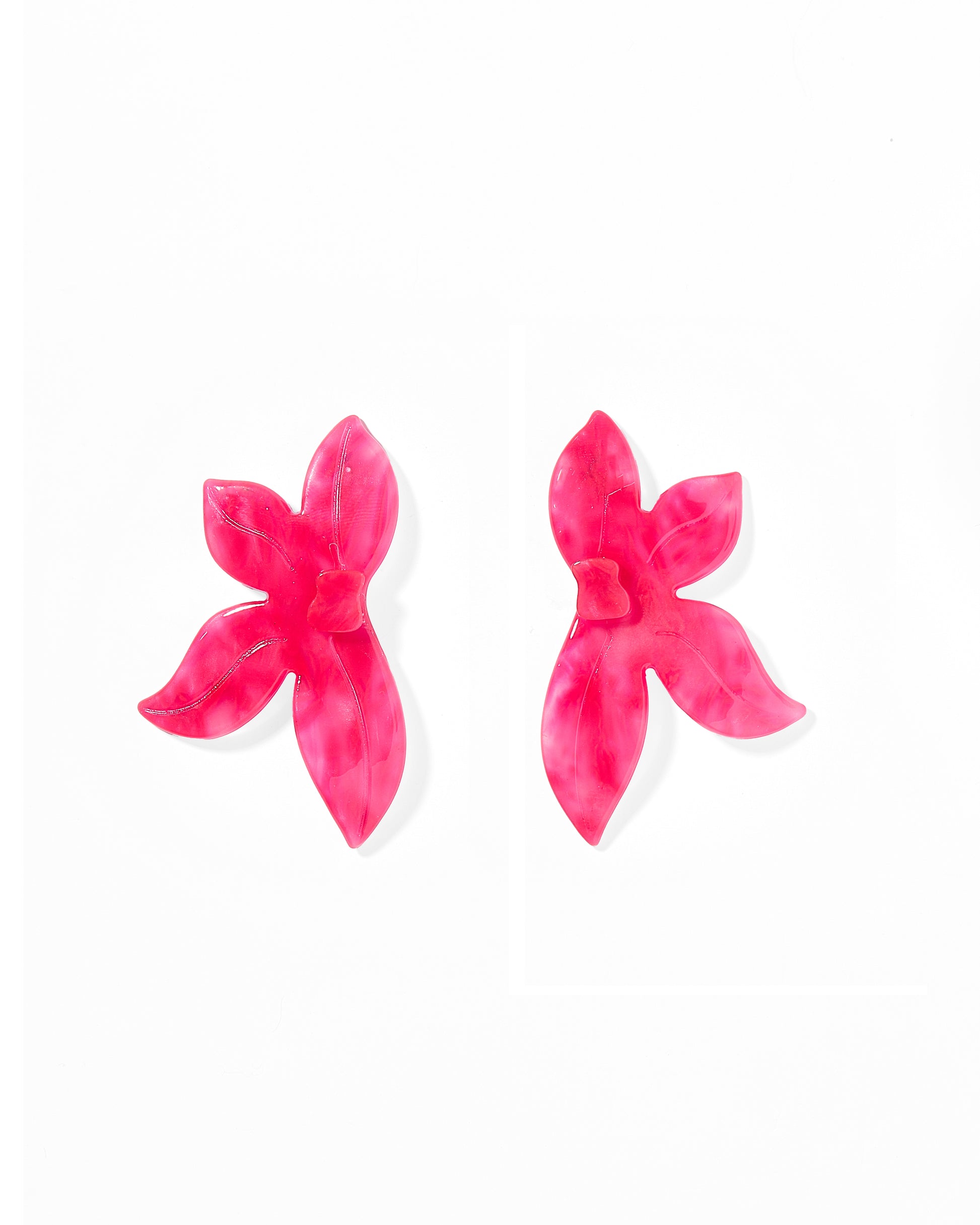Add a bold and vibrant touch to your look with the Fern Statement Earrings in Cosmic Pink. These 25mm floral-inspired earrings feature four petals that delicately frame your face. The transparent base with hues of hot pink and a glossy finish gives them a striking, energetic look. Crafted from 100% surgical-grade stainless steel and eco-friendly acetate, LINNY CO jewelry is always copper and nickel-free, ensuring it's safe for sensitive ears. These lightweight and durable earrings are perfect for making a statement.
