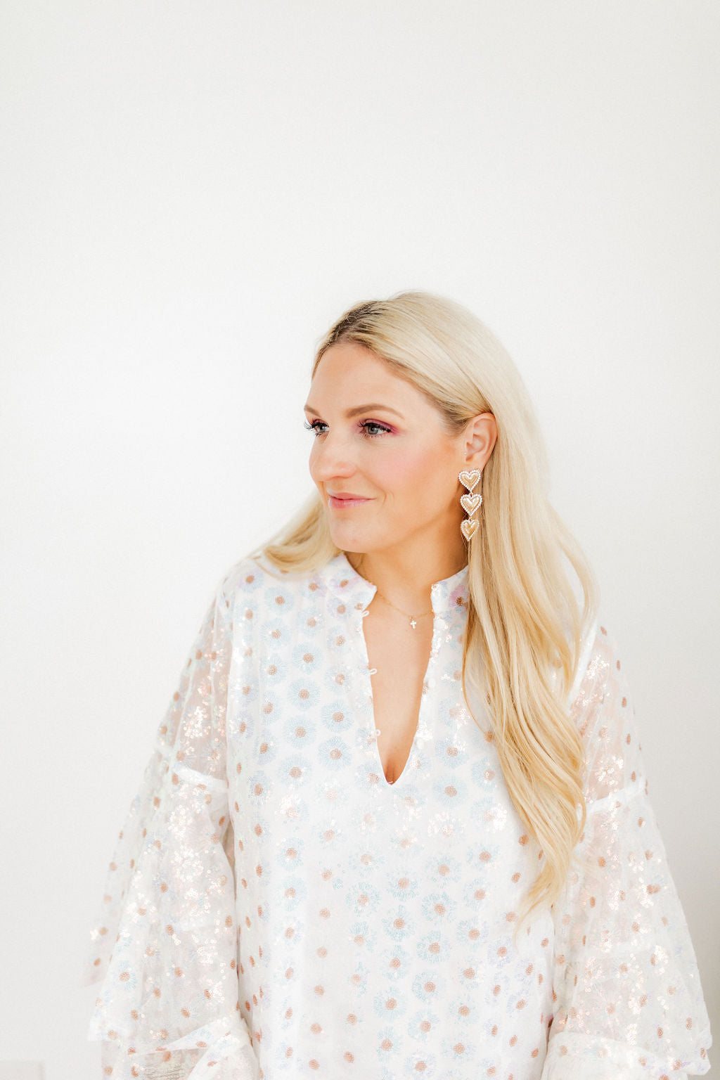 The Lylnee heart drop earring is 70mm in length.