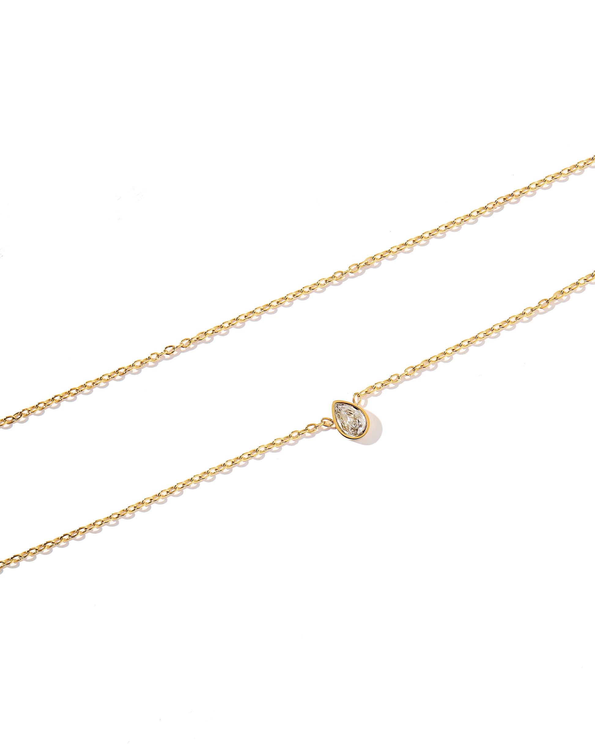 Add a touch of sophistication to your jewelry collection with The Paloma Pear Drop Necklace in Gold. Featuring a stunning 7mm x 5mm CZ stone set in a gold bezel, this necklace offers a delicate yet striking design. Crafted from 100% surgical-grade stainless steel, it is both durable and lightweight, making it perfect for everyday wear. The 16-inch chain, with a 2-inch extender, ensures an adjustable and comfortable fit for all-day comfort. Hypoallergenic, nickel- and copper-free, making it ideal for sensitive skin.