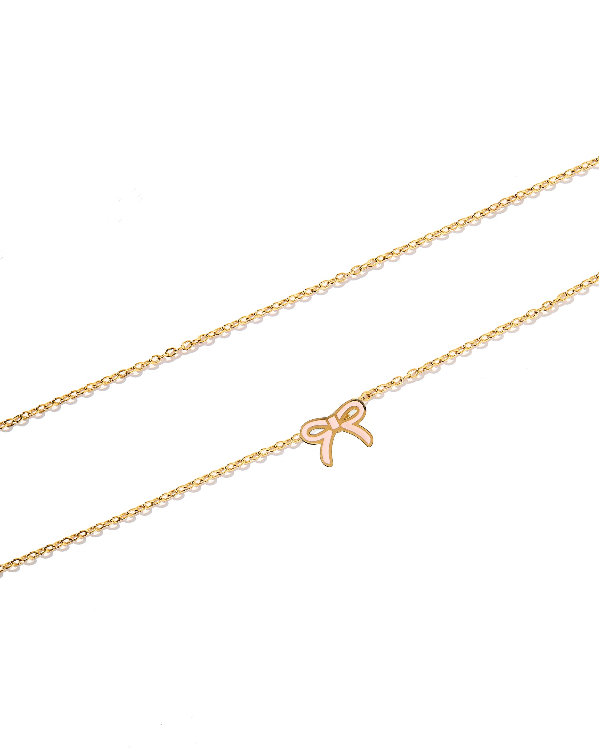 The Sadie Bow Light Pink Necklace features a delicate thin gold bow pendant paired with a soft light pink accent, offering a sweet and elegant touch. Crafted from 100% surgical-grade stainless steel, this necklace is lightweight, durable, and hypoallergenic, making it perfect for sensitive skin. The 16-inch chain with a 2-inch extender ensures a comfortable and adjustable fit, making it ideal for teens and adults alike.