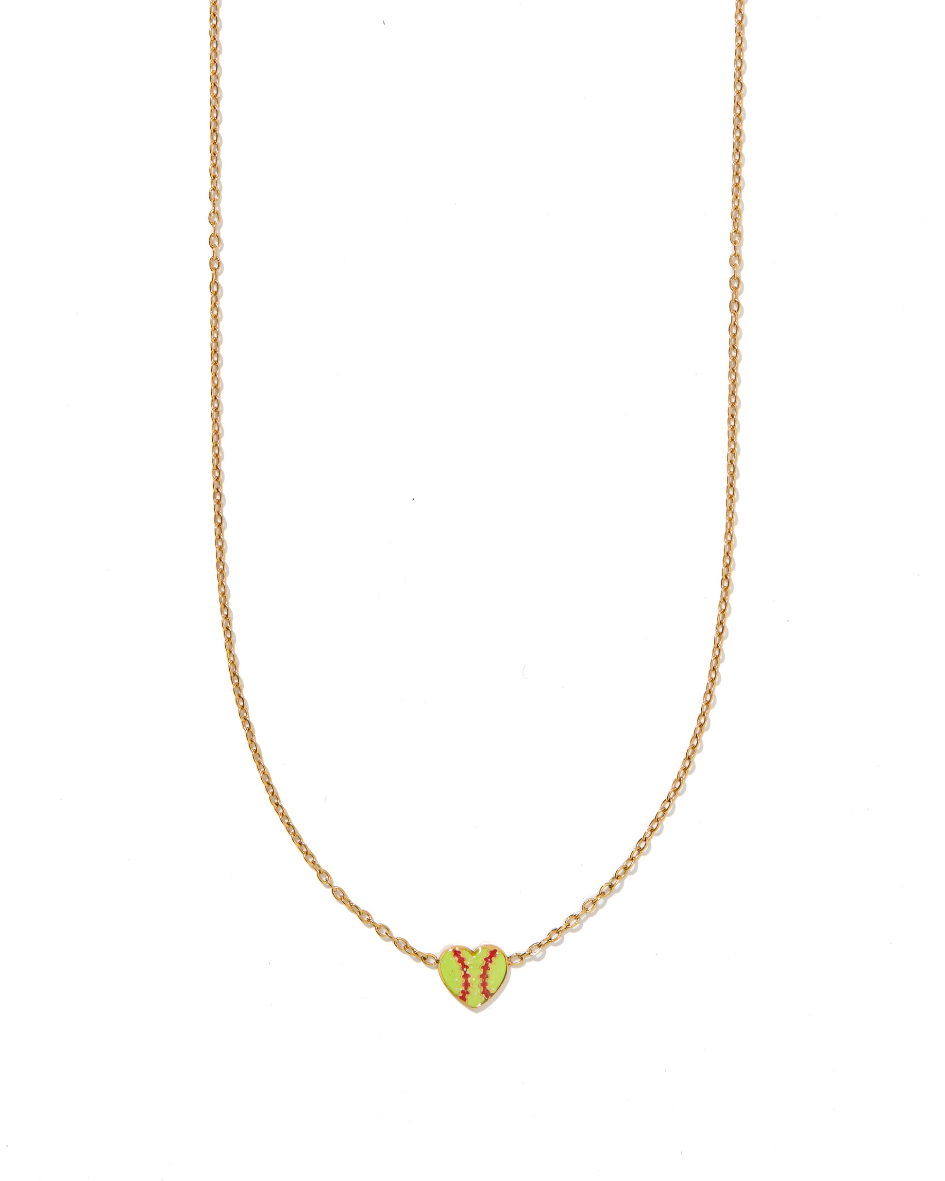 Celebrate your love for the game with the Softball Heart Necklace. This delicate piece features a heart-shaped charm with a glitter softball design, measuring 6mm long x 8mm wide. Crafted with a 16-inch chain and a 2-inch extender, the necklace adjusts to fit comfortably at either 16" or 18", making it a versatile piece for layering or wearing solo. Lightweight and hypoallergenic, it’s safe for sensitive skin and designed for everyday wear.
