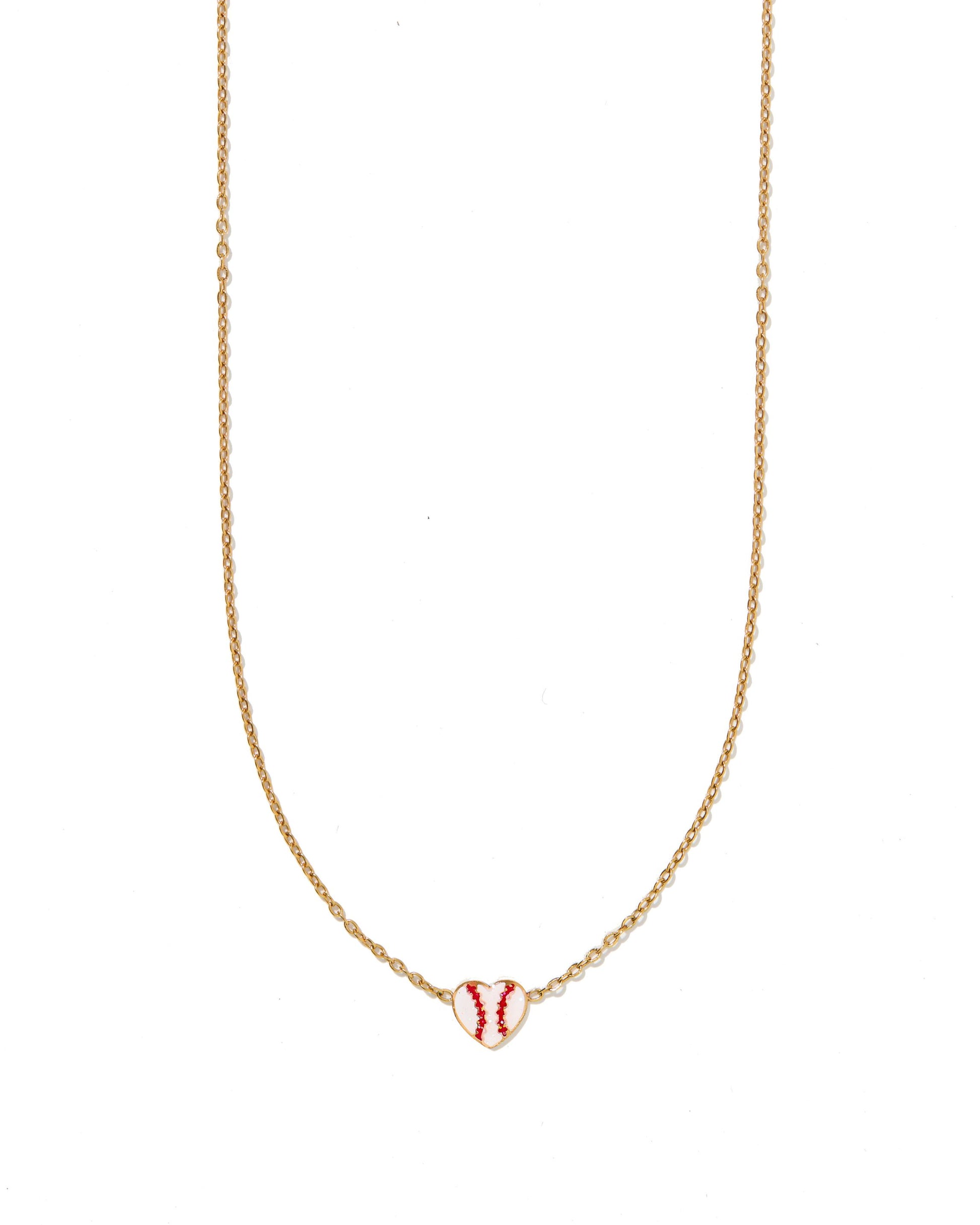 Celebrate your love for the game with the Baseball Heart Necklace, a charming everyday accessory that brings a sporty touch to any outfit. The petite baseball-patterned heart pendant adds personality and pairs perfectly with our bestselling Baseball Heart Screw-On Flatback Stud Earrings. Its adjustable 16–18 inch chain makes it easy to wear alone or layered.
