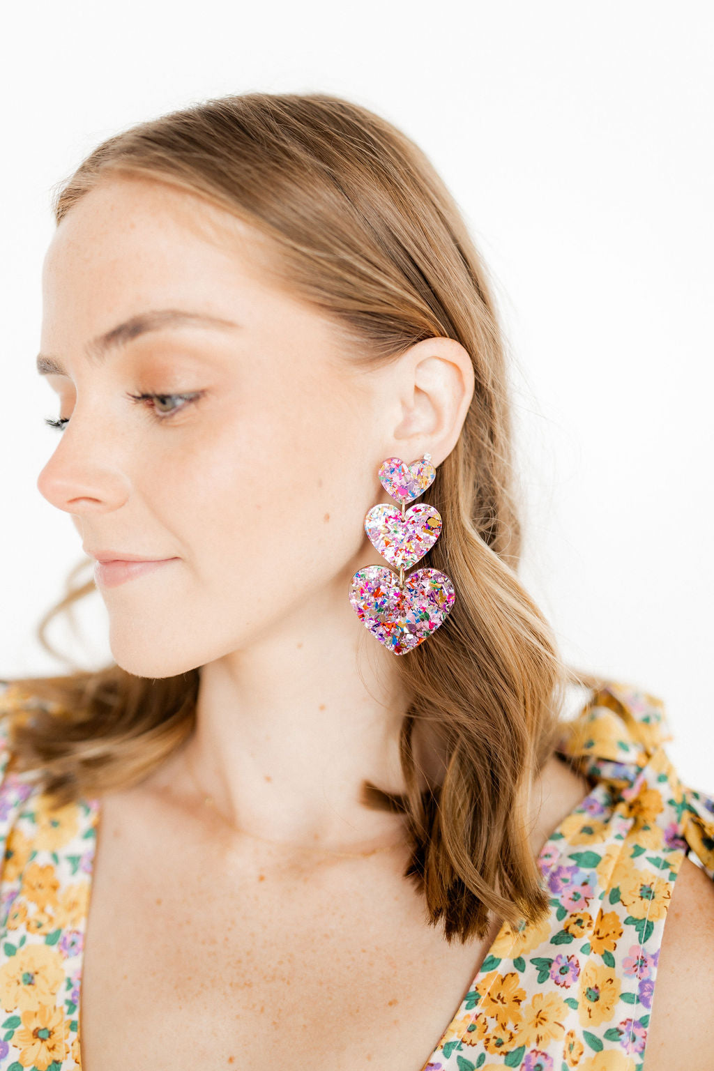 Pink Birthday Confetti has metallic sequin shards of light and hot pink, yellow, green blue and red. The ultimate celebratory earring!