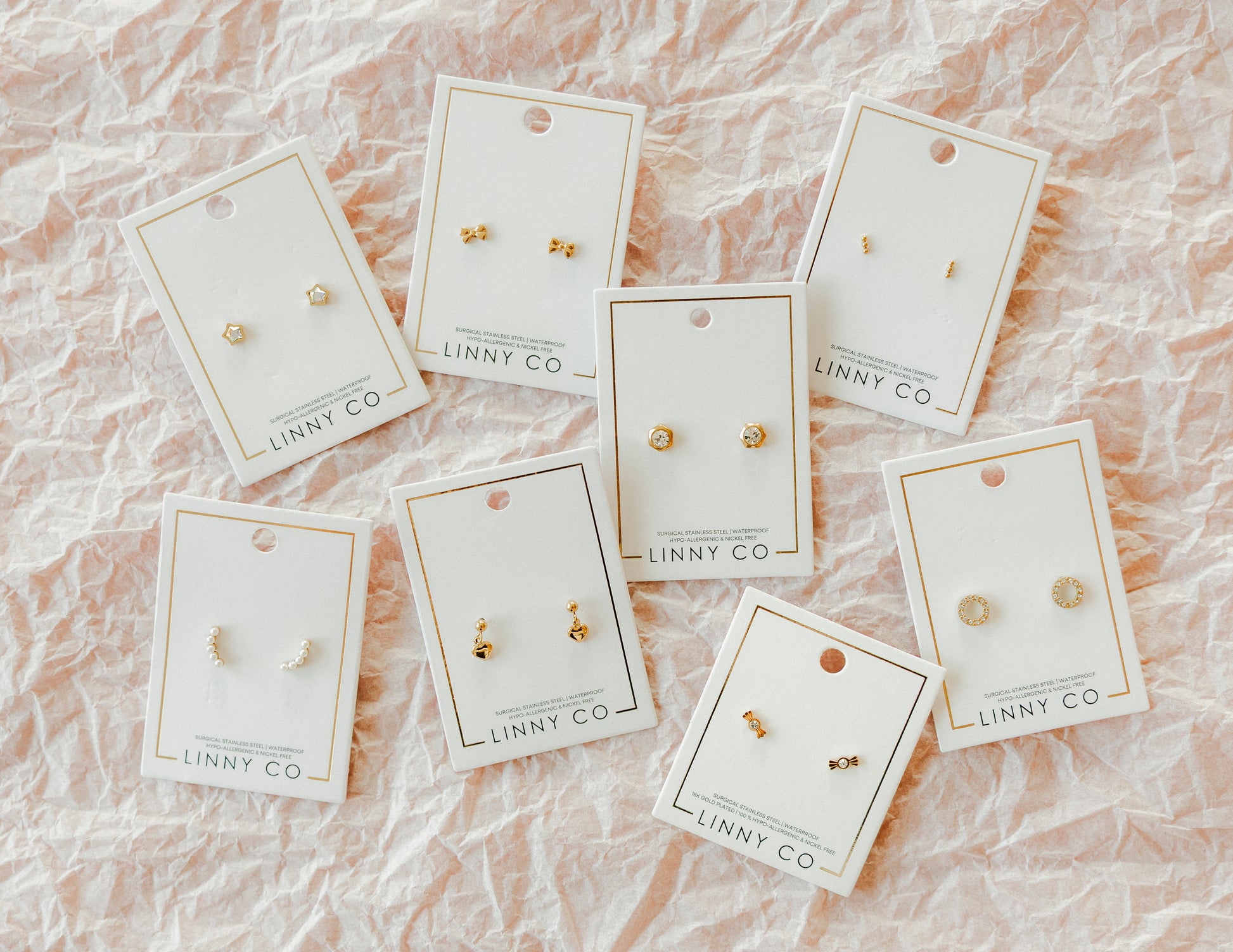 Discover your go-to, waterproof staple with our micro-screwback stud earrings. These studs are meticulously crafted from premium surgical stainless steel, offering both style and durability. The innovative screwback design ensures a secure fit, making them perfect for all day wear. LINNY CO jewelry is lightweight, made to last, and always safe for sensitive ears. Our earrings are copper and nickel-free, ensuring comfort for everyday wear.
