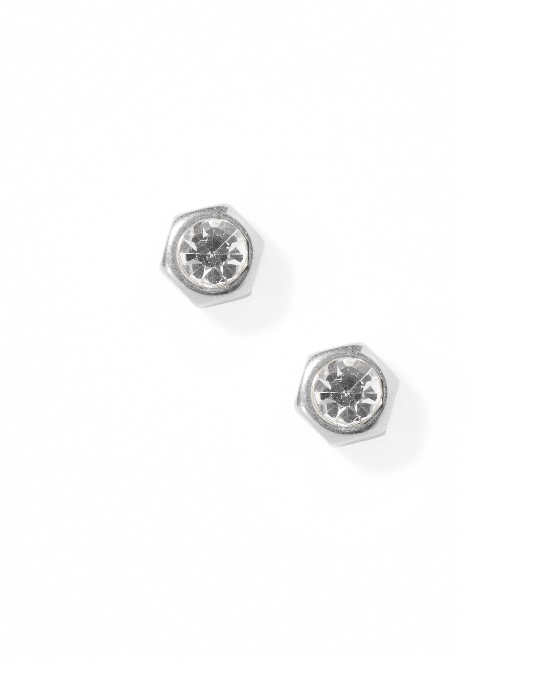 - 8mm thin silver-plated hexagon with a clear CZ stone in the center