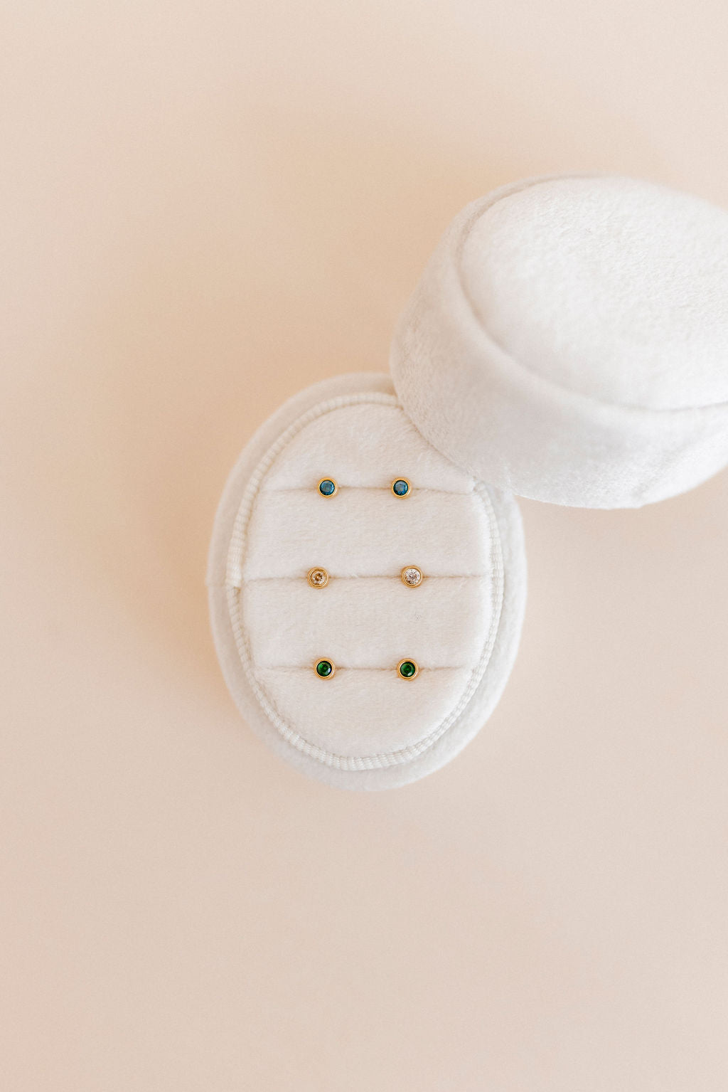 Waterproof and versatile, these tiny sapphire studs are perfect for adding a pop of color to any outfit. Whether you're dressing up for a special occasion or looking for an everyday staple, these earrings offer both style and durability.