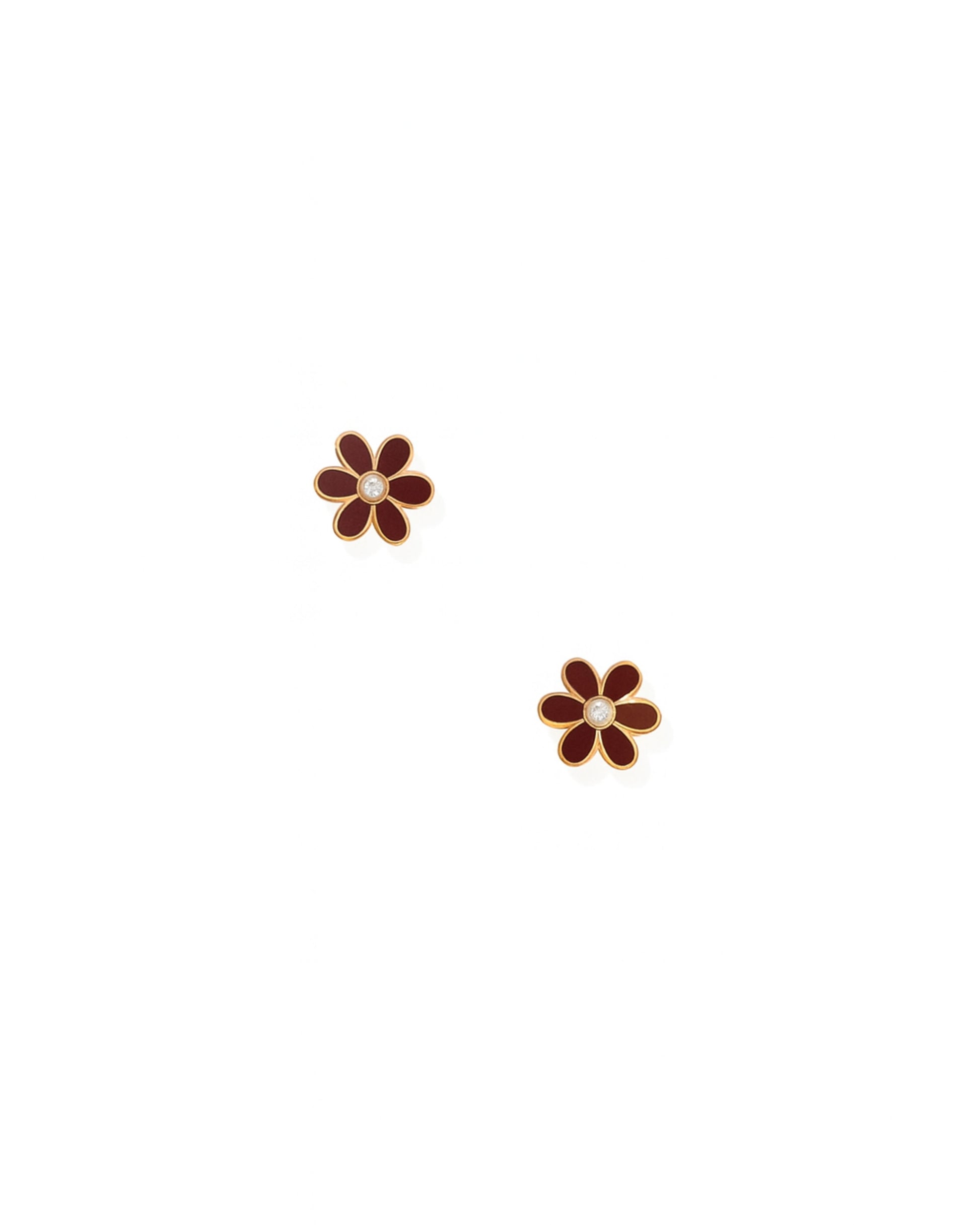 The design showcases an enamel flower with a radiant CZ stone at its center, offering a stylish pop of color. These studs are versatile enough for daily wear or special occasions, providing both aesthetic appeal and long-lasting comfort.