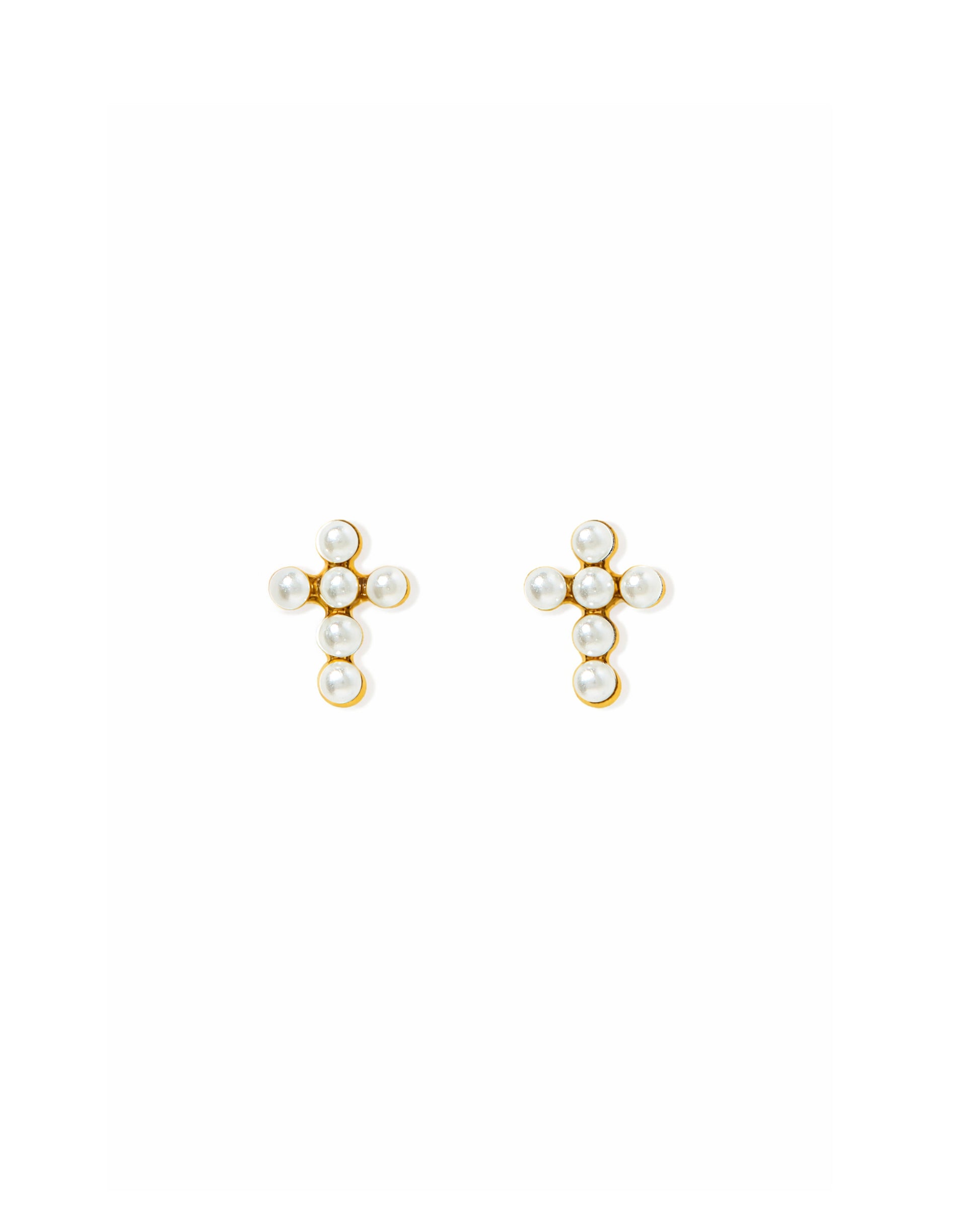 Elegant and meaningful, the Clara Cross Screwback Stud Earrings feature petite pearl-like beads arranged in a delicate cross silhouette. Their polished gold-toned base and secure flat-back screw post make them a comfortable, hypoallergenic option for everyday wear while adding a soft, faith-inspired touch to any jewelry collection.