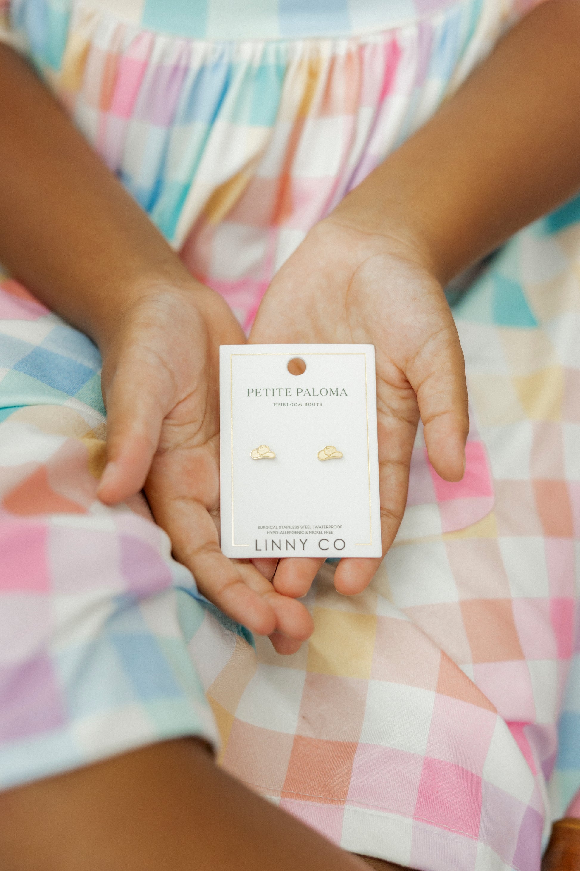 The Screwback Stud Earrings - Cowgirl Hat are part of a special collaboration with Petite Paloma Boots. These playful earrings feature a detailed cowgirl hat design, making them the perfect accessory for western-inspired outfits. The screw back earrings ensure a secure and comfortable fit, ideal for all-day wear. Hypoallergenic and lightweight, these earrings are suitable for both teens and adults, adding a fun and charming touch to your style.
