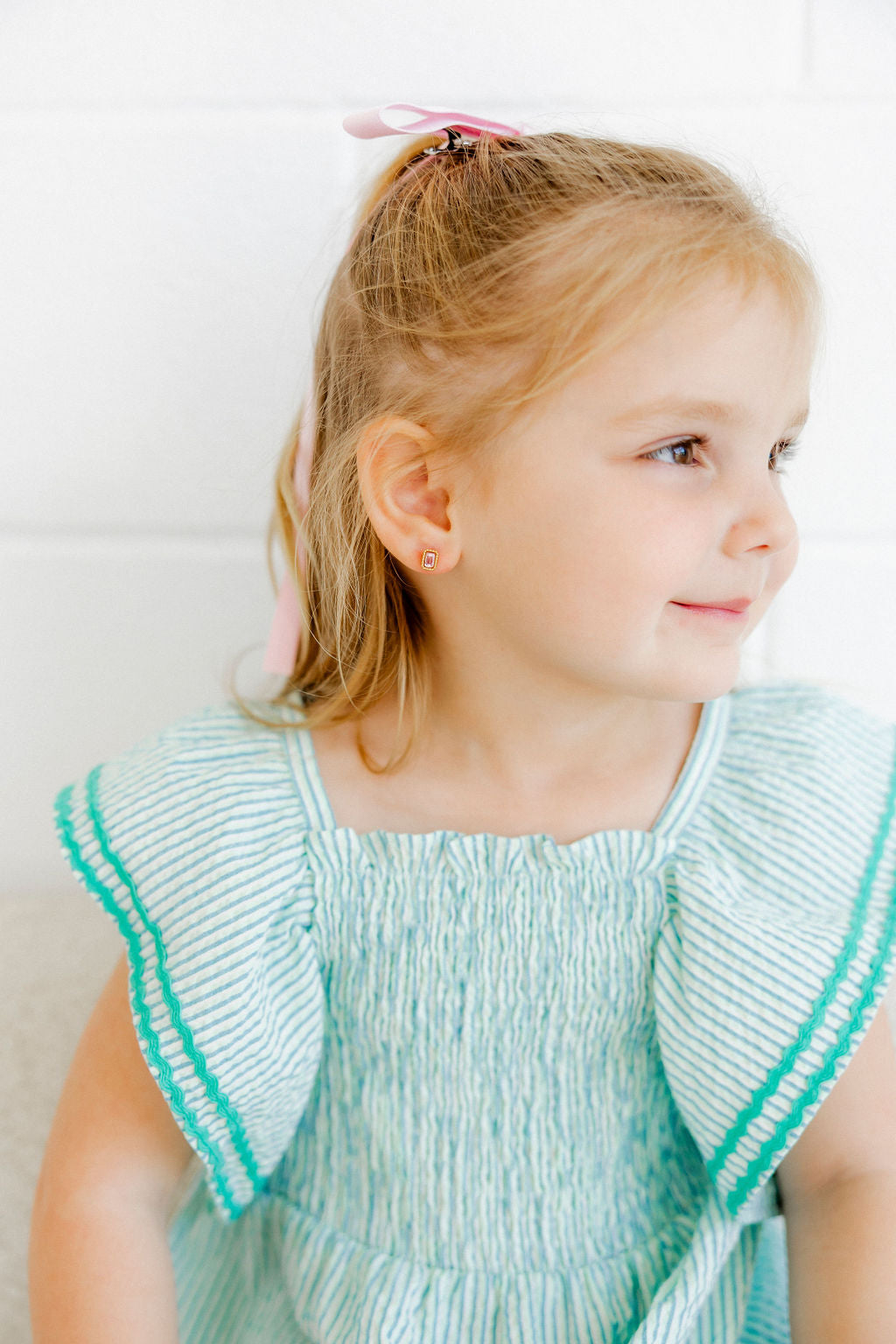 Elevate your style with the Rectangular Stud with Pink Stone Earrings. These 10mm studs feature a sleek rectangular design, with a vibrant pink stone at the center, surrounded by a detailed frame that adds sophistication and flair. Made from 100% surgical-grade stainless steel, these earrings are lightweight, durable, and hypoallergenic, making them perfect for sensitive ears. The secure screwback design ensures a snug fit.