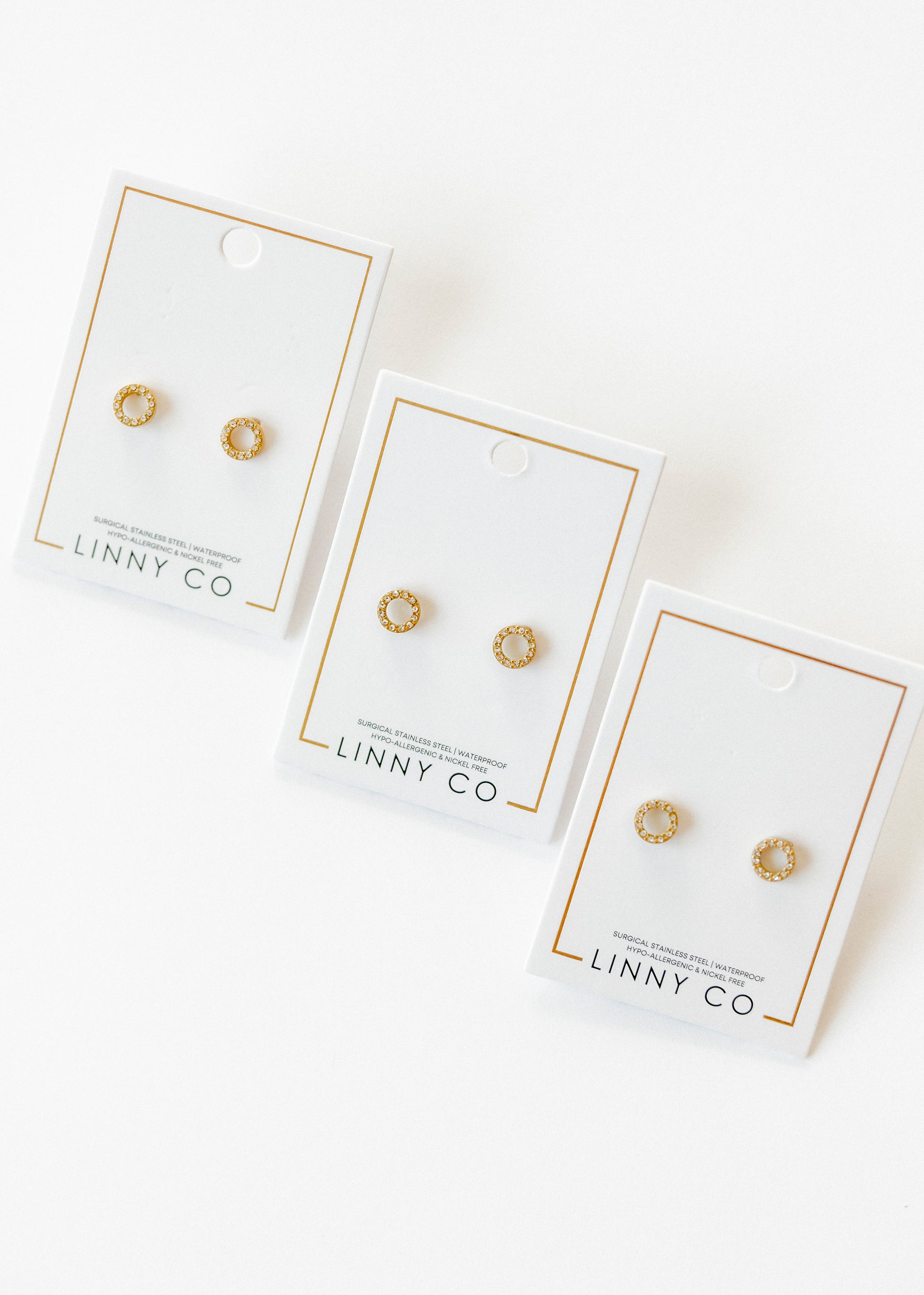 With a timeless design that radiates elegance, the Lainey Gold Stud Earrings feature an 8mm round open circle adorned with small CZ stones for a sparkling, sophisticated touch. Crafted from 100% surgical-grade stainless steel, these earrings are lightweight, durable, and hypoallergenic, perfect for sensitive ears. The innovative screwback design ensures a secure and comfortable fit.
