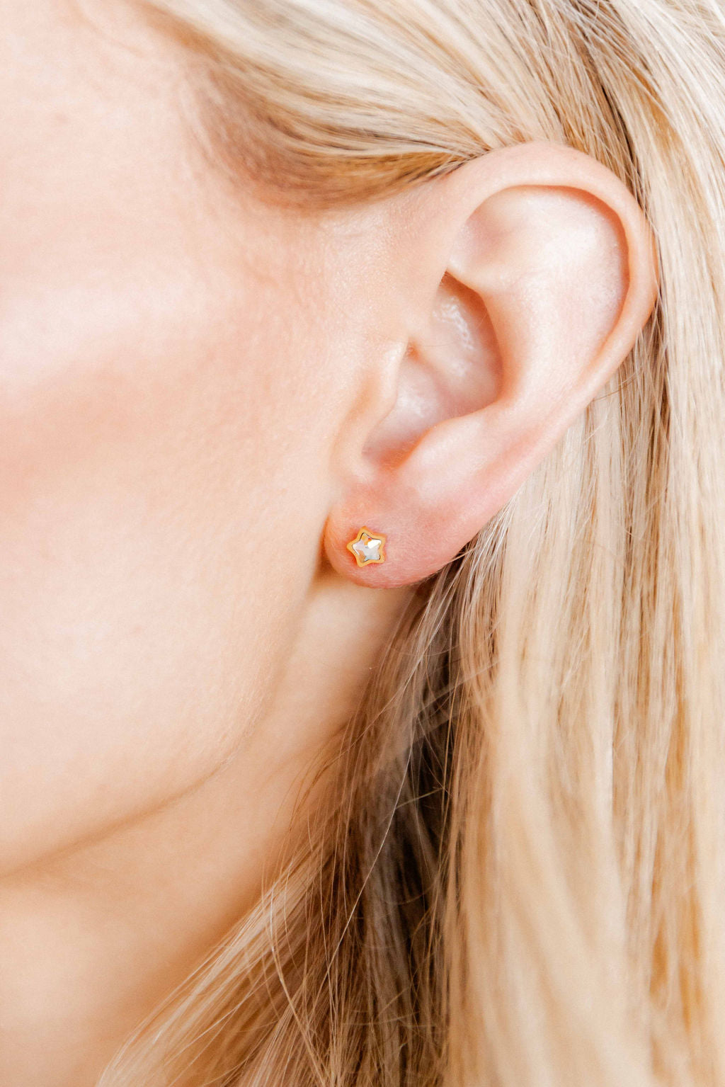 - Gold star with iridescent CZ stone in the center, 4mm in size