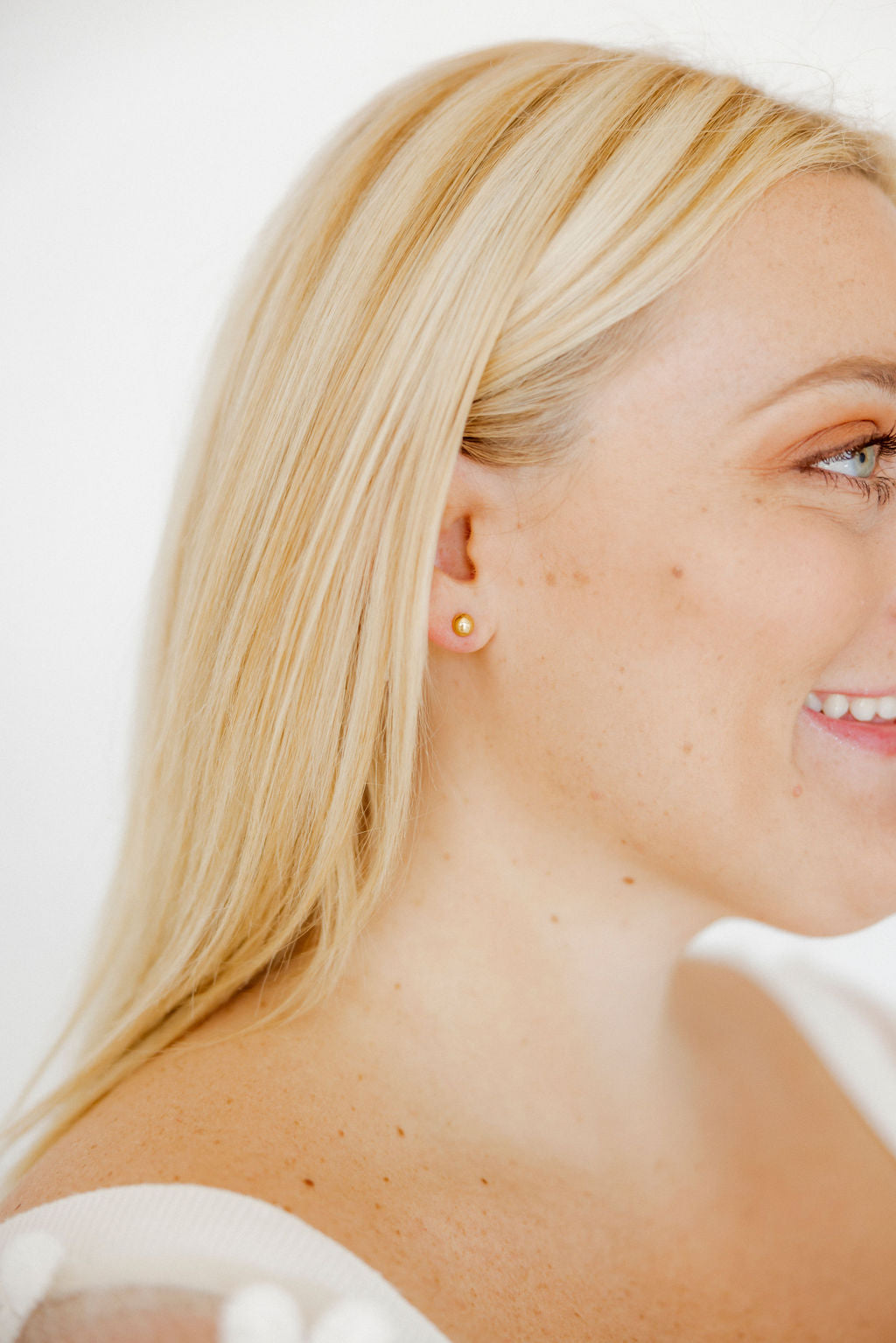 Make a bold yet refined statement with the Screwback Stud Earrings - Vera Round 6mm. These gold flat-back ball-shaped micro-studs offer a timeless, minimalist design that’s perfect for any occasion. Crafted from high-quality surgical-grade stainless steel, these earrings are durable, lightweight, and waterproof, ensuring they’re made to last. The innovative screwback design guarantees a snug and secure fit for everyday wear. These hypoallergenic and nickel-free studs offer comfort and style that can be worn all day, every day.