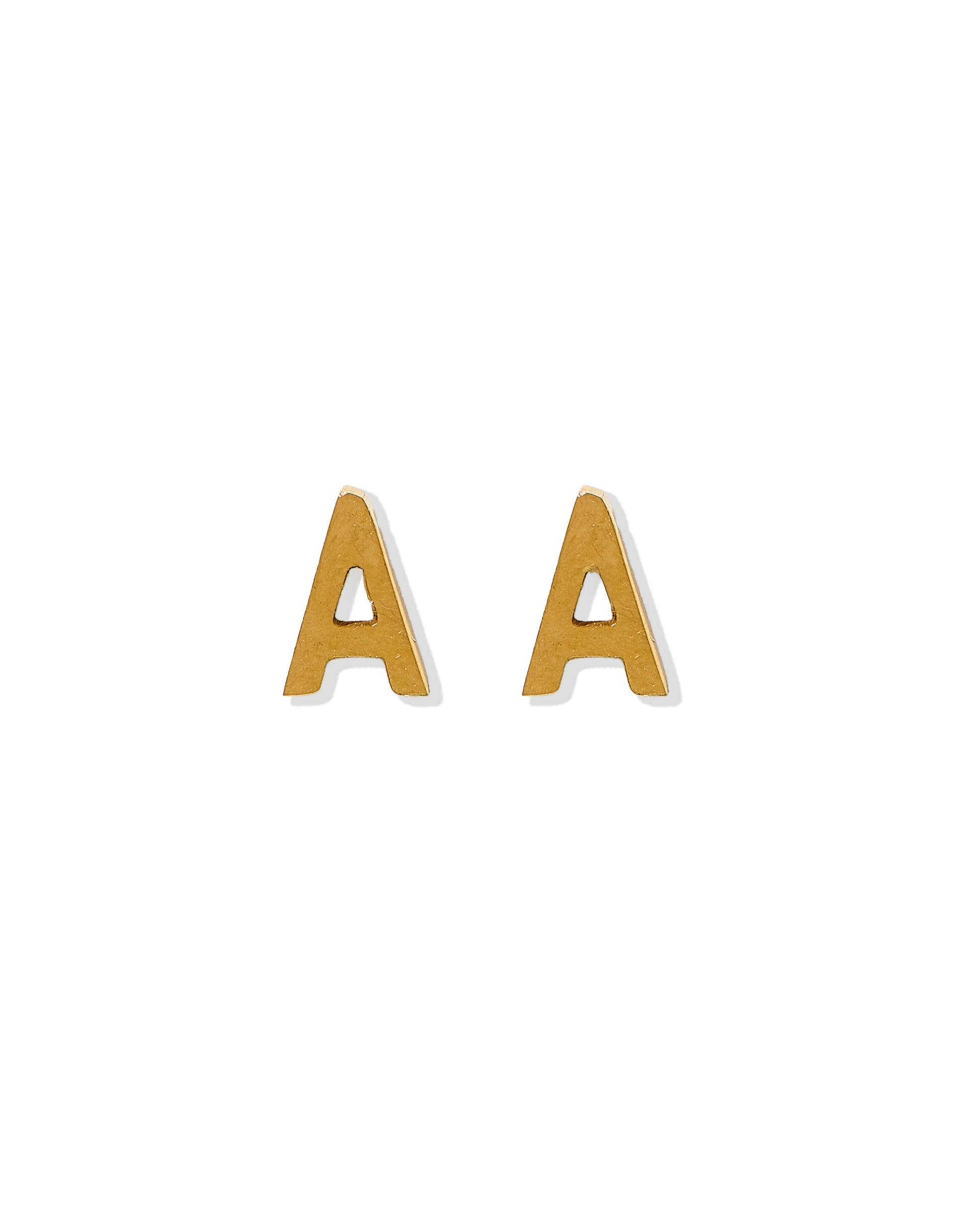 One (1) pair of Micro Letter A Gold Screw-Back Stud Earrings