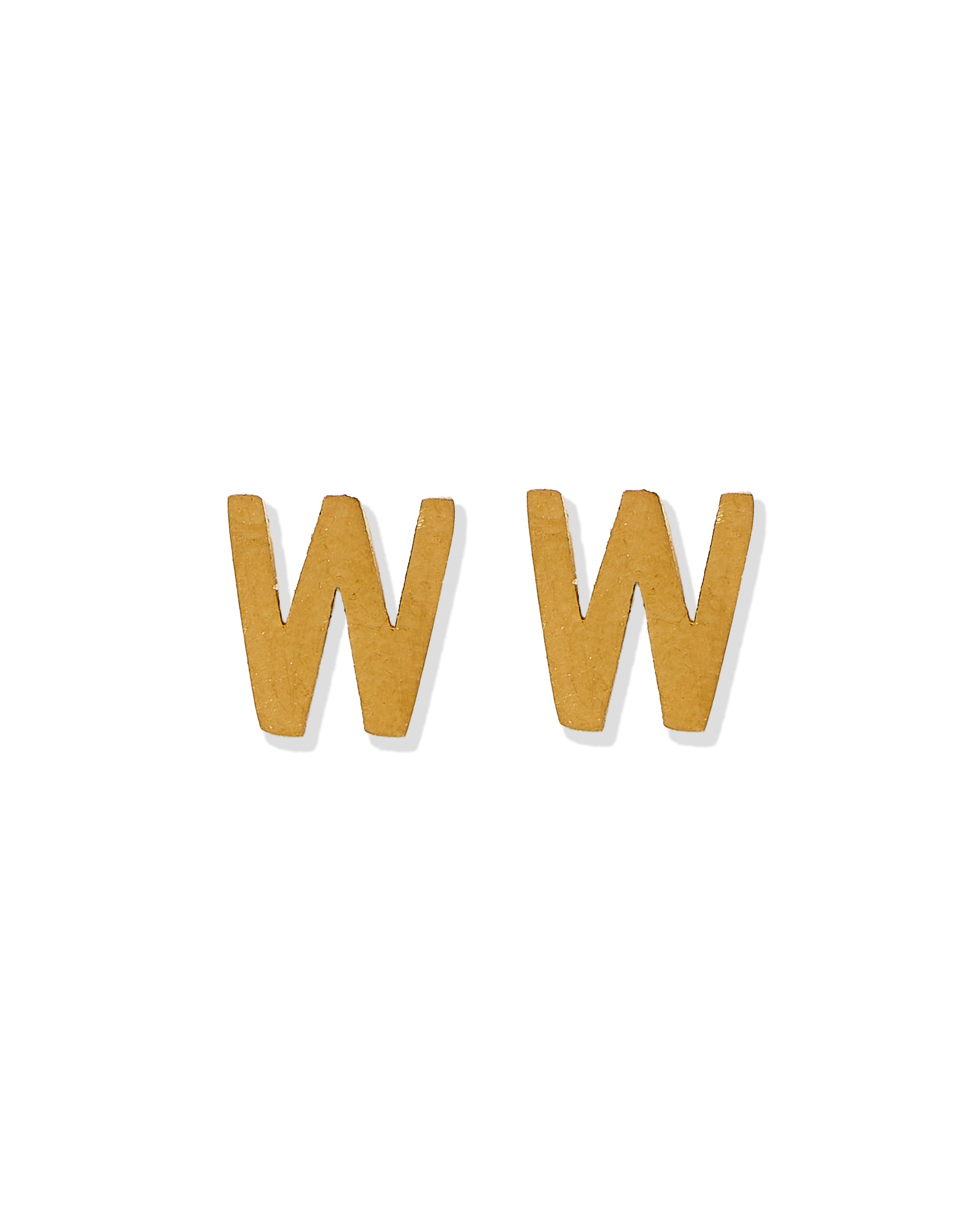 One (1) pair of Micro Letter W Gold Screw-Back Stud Earrings