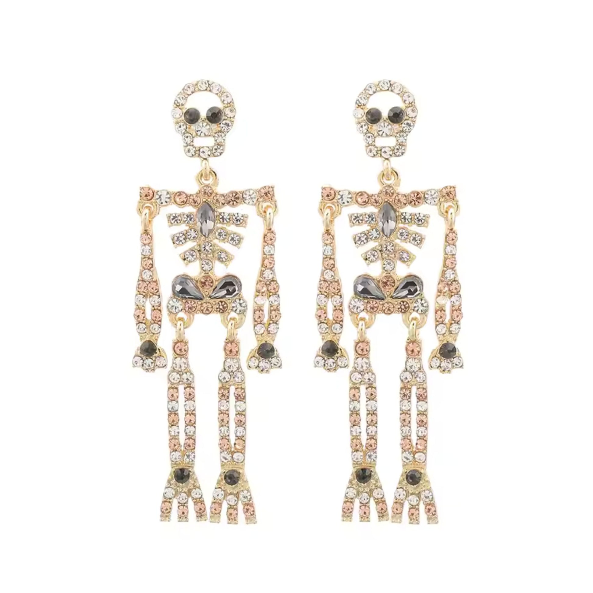 The Skeleton Statement Earrings feature a 3-inch long design with sparkling CZ details, creating a bold and fun look. Perfect for Halloween, these earrings add a spooky touch to your costume or outfit. Lightweight and comfortable, they are sure to make a statement at any festive occasion.