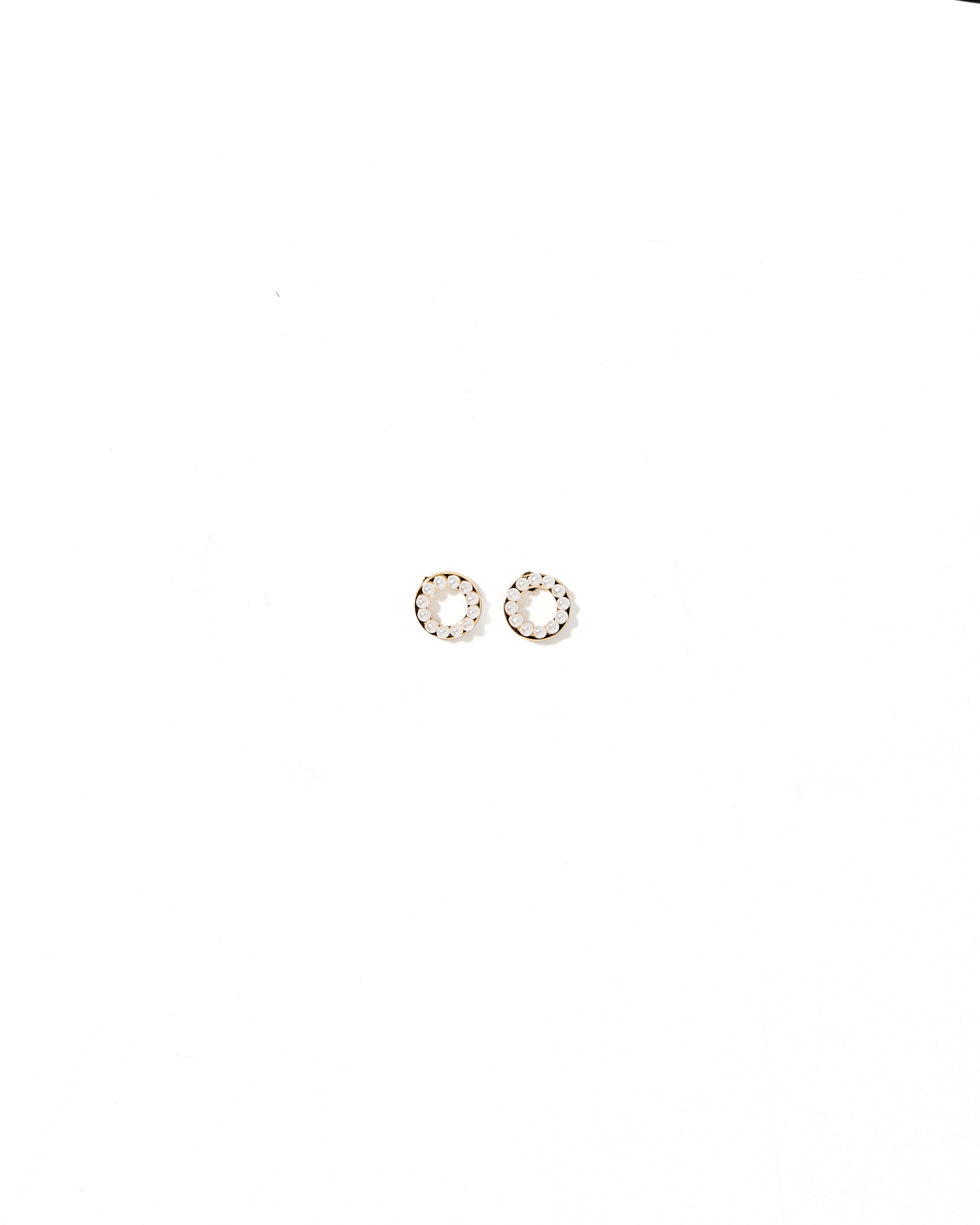 Style Description: A stainless steel stud in the shape of a circle with synthetic pearl accents. Measuring on the smaller side, it is 6mm in size.